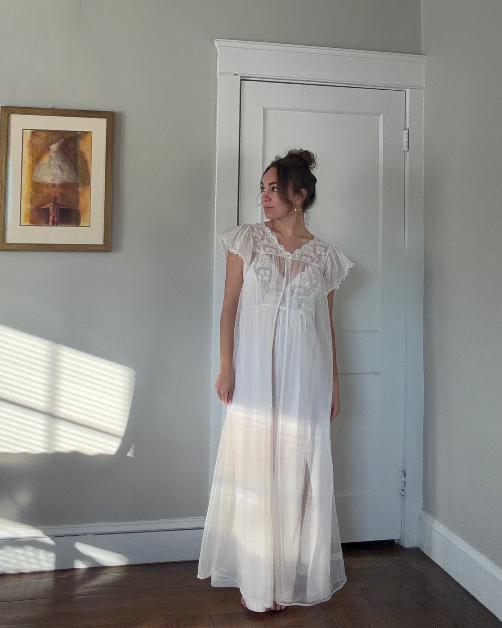 A soft, romantic vintage Gilead peignoir set in a crisp bridal white.